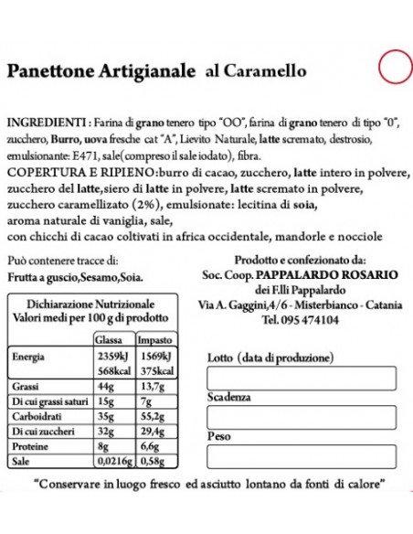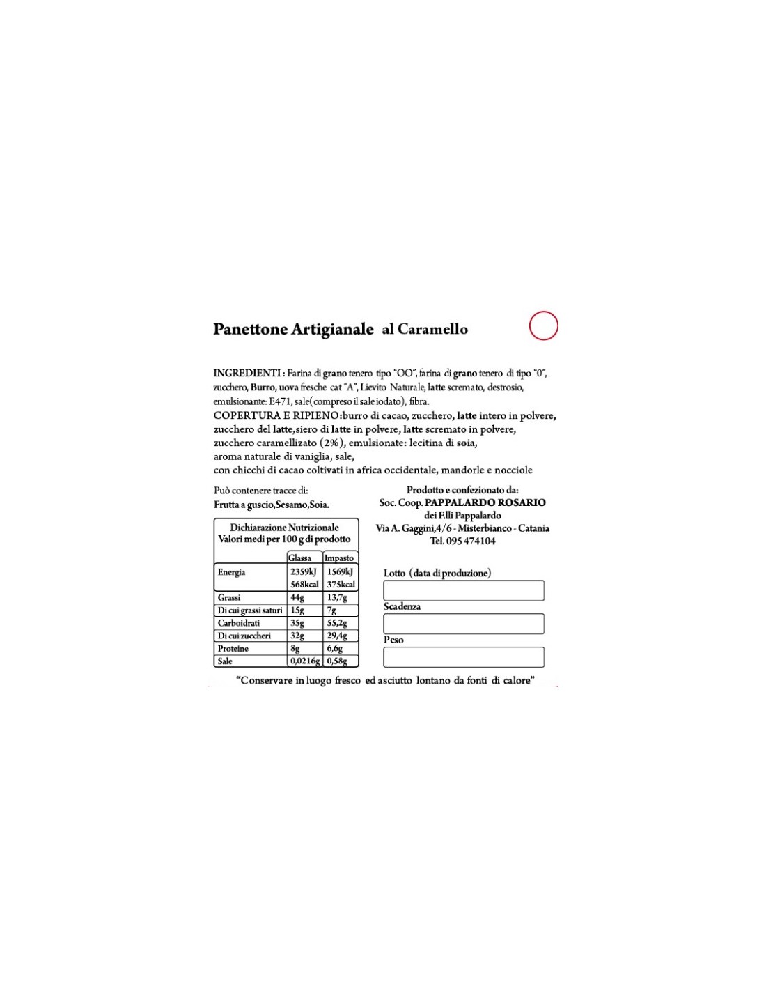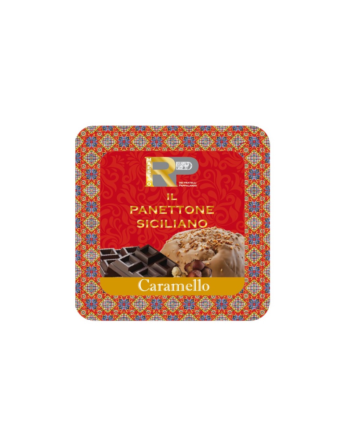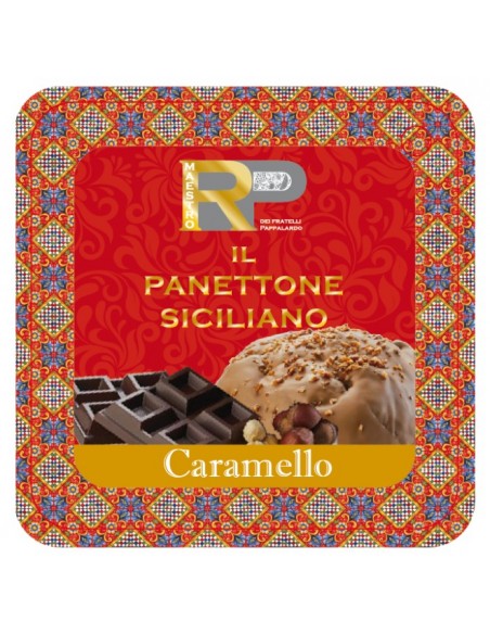 Panettone artigianale al Caramello Salato dei F.lli Pappalardo ricoperto da cioccolato al caramello.