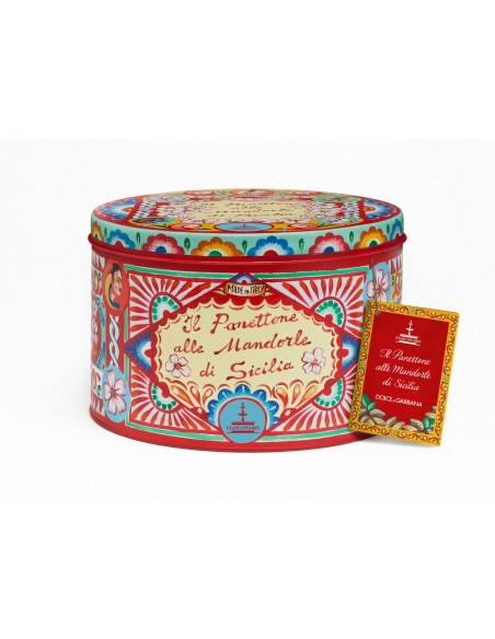 Confezione: 1 panettone da 1 kg Ingredienti: Farina di grano tenero, uvetta (18%), burro, glassa alle mandorle (11%) (albume da uova fresche di galline allevate a terra, zucchero, farina di riso, farina di mandorle (7,7%), amido modificato, aromi), zucchero, uova fresche di galline allevate a terra, tuorlo da uova fresche di galline allevate a terra, lievito naturale (contiene farina di grano), zucchero in granella (3%), mandorle di Sicilia (Amygdalus communis L.)(3%), “vino liquoroso Terre Siciliane IGP”, miele di Sicilia, sciroppo di zucchero invertito, pasta d’arancia (scorza d’arancia, zucchero, sciroppo di glucosio, succo di limone concentrato), emulsionante: mono e digliceridi degli acidi grassi, burro di cacao, latte scremato in polvere, sale, aromi naturali: bacche di vaniglia.