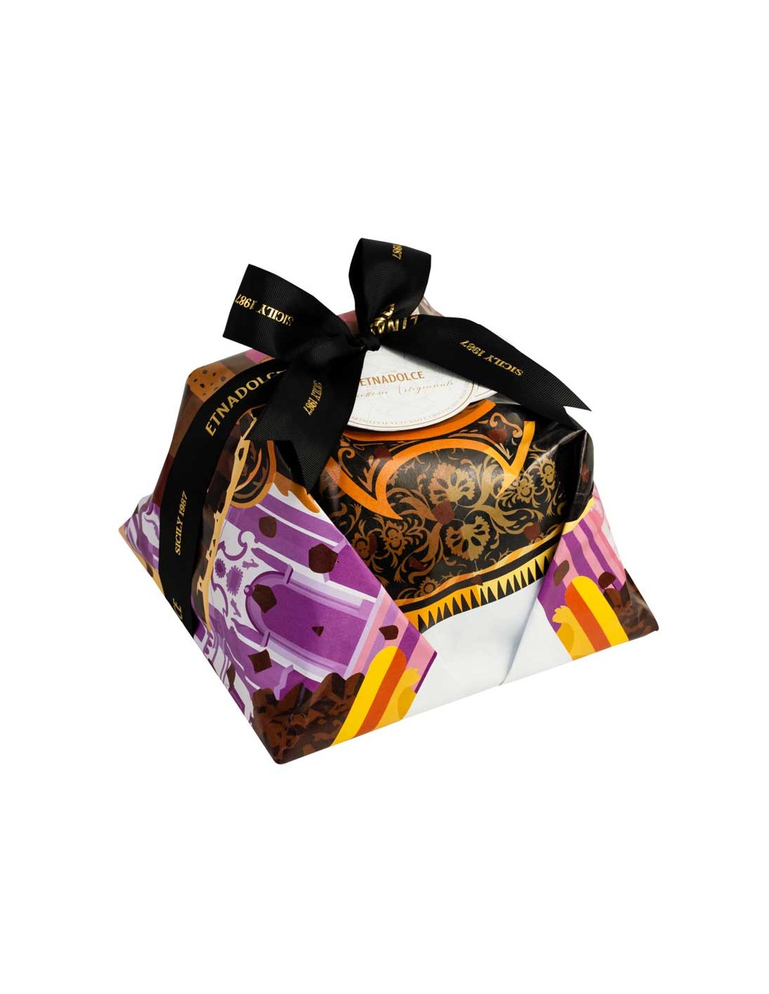 Contiene: Panettone Vulcano e Cioccolato di Modica IGP incarto a mano pz.1 da 1 kg