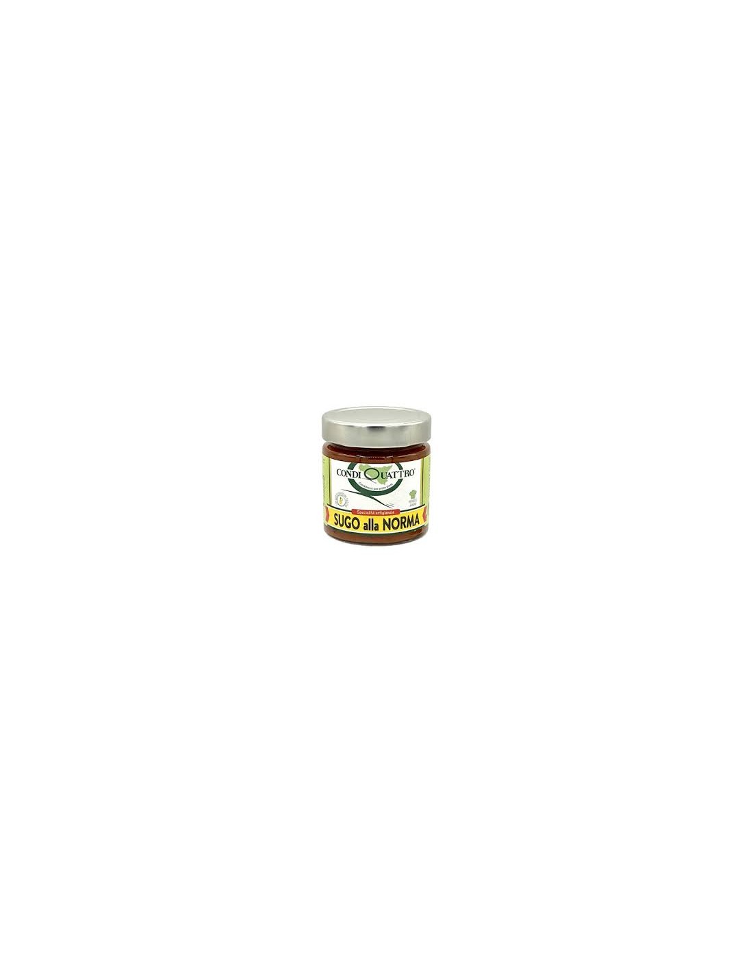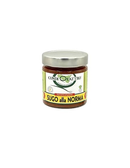 Ingredienti: Polpa di pomodoro 70%, Melanzane 20%, Olio extra vergine di oliva, zucchero, sale, basilico, aglio.