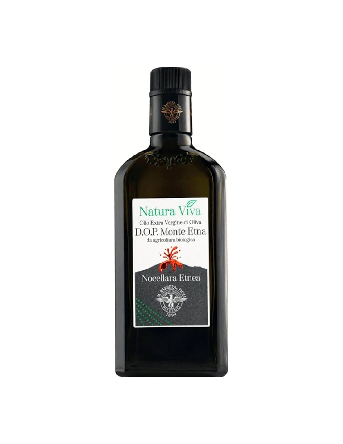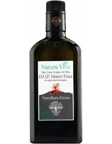 Olio D.O.P. Monte Etna da agricoltura biologica ottenuto da olive coltivate esclusivamente alle pendici del vulcano.