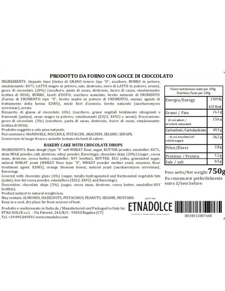 Colomba con Gocce di Cioccolato Etnadolce incarto a mano 750 gr