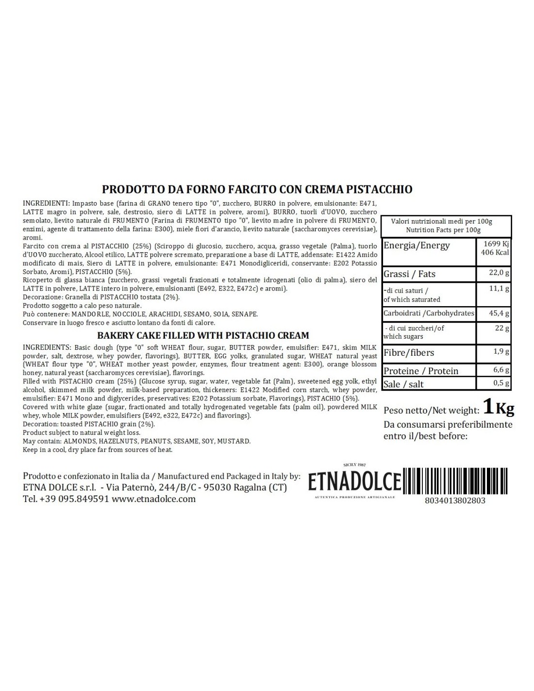 Le indicazioni riportate sulle etichette dei prodotti potrebbero variare per motivi da noi indipendenti, pertanto potrebbero esserci delle momentanee discrepanze tra le informazioni presenti sul sito e quelle presenti sui prodotti consegnati. Ti invitiamo a verificare sempre le informazioni riportate sul prodotto prima del suo consumo o utilizzo. Per la data di scadenza dettagliata scrivere a info@nelsonsicily.com.
